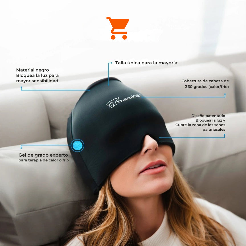 El gorro de gel Theraice utiliza la crioterapia para reducir la inflamación y calmar la presión en la cabeza. Solo necesitas enfriarlo en el congelador y colocarlo para sentir un alivio inmediato de migrañas, dolores de cabeza y tensión acumulada.